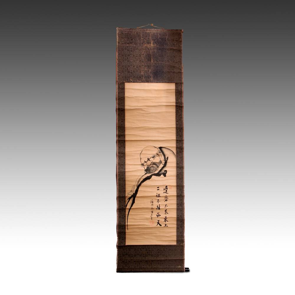 Bodhidharma was a Buddhist monk who lived in the 5th or 6th century and is credited as the founder of Zen Buddhism. There is very little biographical information concerning Bodhidharma but many stories and legends have been passed down through the Zen tradition. In Buddhist art he is often portrayed as ill-tempered and profusely bearded like a barbarian. Nevertheless, the daruma doll, a depiction of Bodhidharma, is widely regarded as a symbol of perseverance, encouragement and good luck.