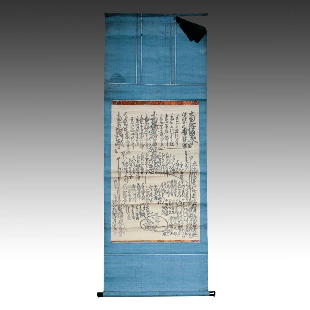 Jikkai Dai Mandala: a mandala of the Nichiren sect of Buddhism. It illustrates the Ten Realms that comprise the entirety of the Buddhist universe.