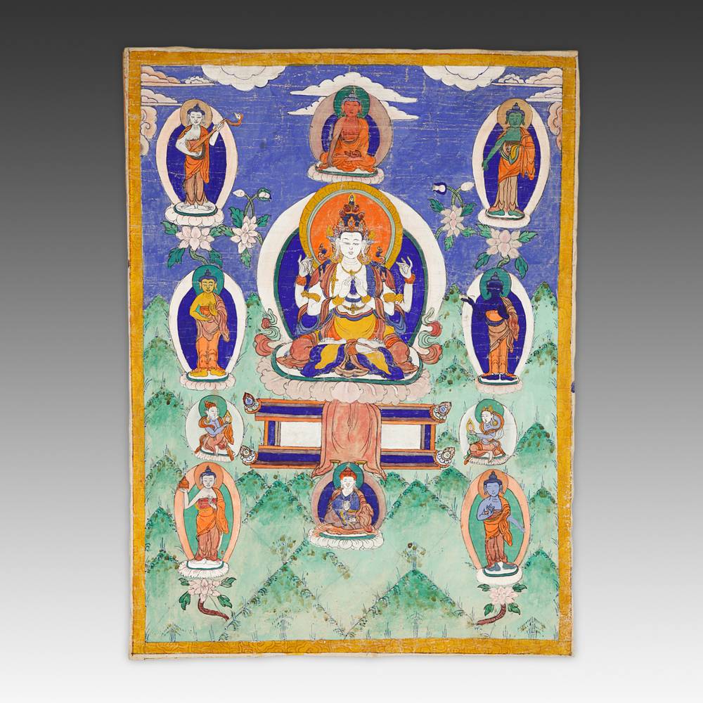 Thangka or Devotional Painting Depicting Avalokiteshvara