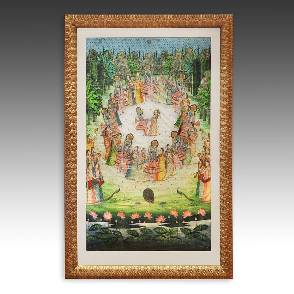 The pichvai (picha — back, and vai — of) is a hanging cloth displayed behind the statue of a deity. In the 15th century the cult of bhakti, or devotion, swept over India... <a href="/stories-descriptions/indian-pichvai-depicting-krishna">Read more</a>