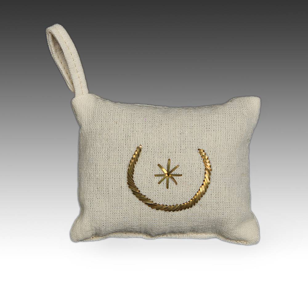 EMBROIDERED METALLIC THREAD WITH LAVENDER FILL
