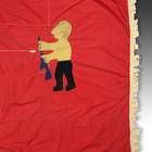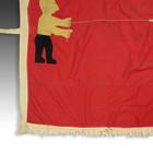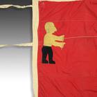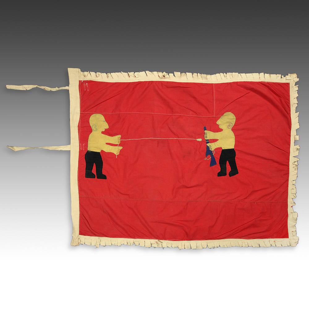 Even though the Akan societies in Ghana had no standing army, the asafo or people's militia, was a well established social and political organization based on military principles. Each asafo group is identified by a particular name and number and through a set of symbols displayed prominently on its flag. Verbal proverbs, a significant facet of Akan culture, are represented by colored cutout figures appliqued on the cotton ground.