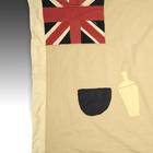 Even though the Akan societies in Ghana had no standing army, the asafo or people's militia, was a well established social and political organization based on military principles. Each asafo group is identified by a particular name and number and through a set of symbols displayed prominently on its flag. Verbal proverbs, a significant facet of Akan culture, are represented by colored cutout figures appliqued on the cotton ground.