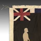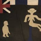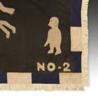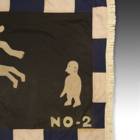 Even though the Akan societies in Ghana had no standing army, the asafo or people's militia, was a well established social and political organization based on military principles. Each asafo group is identified by a particular name and number and through a set of symbols displayed prominently on its flag. Verbal proverbs, a significant facet of Akan culture, are represented by colored cutout figures appliqued on the cotton ground.