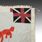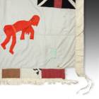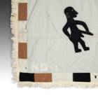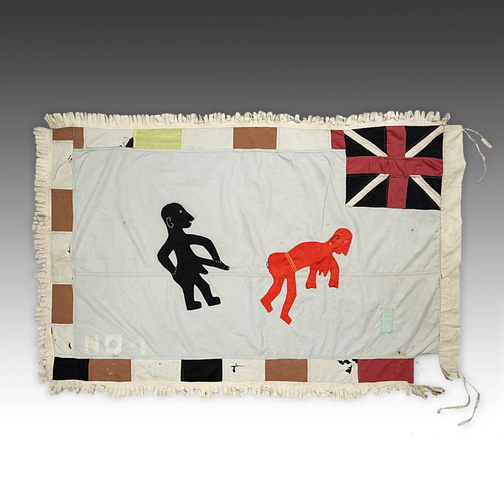 Even though the Akan societies in Ghana had no standing army, the asafo or people's militia, was a well established social and political organization based on military principles. Each asafo group is identified by a particular name and number and through a set of symbols displayed prominently on its flag. Verbal proverbs, a significant facet of Akan culture, are represented by colored cutout figures appliqued on the cotton ground.