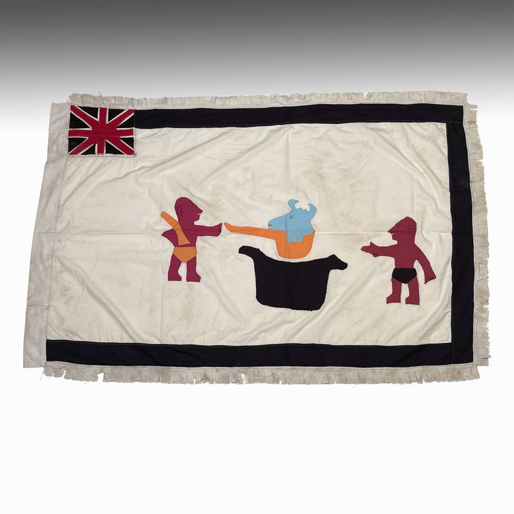 FRANKAA OR ASAFO MILITARY FLAG; Two Men With Cow in Cooking Pot