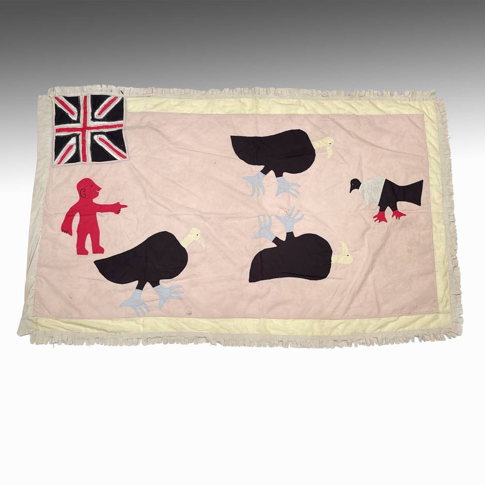 FRANKAA OR ASAFO MILITARY FLAG; Red Man, 3 Vultures and B&W Bird