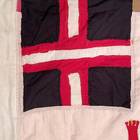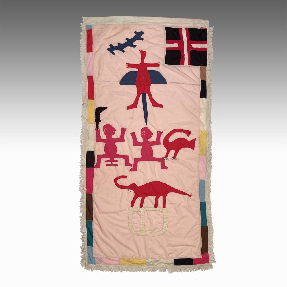 FRANKAA OR ASAFO MILITARY FLAG; Red Flying Lizard, 2 Men, Red Bird & Elephant - Vertical