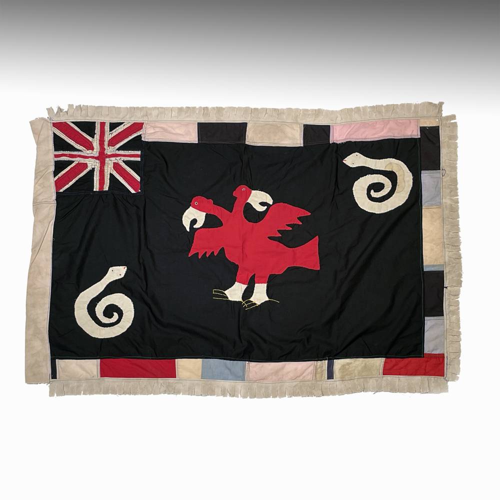 FRANKAA OR ASAFO MILITARY FLAG; Two Headed Red Bird, Two Coiled White Snakes