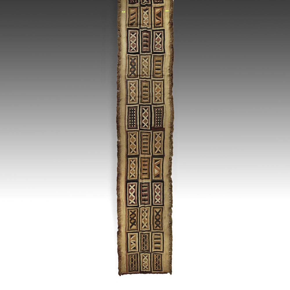 Appliqued raffia with cowrie shells 31'' W x 262'' L