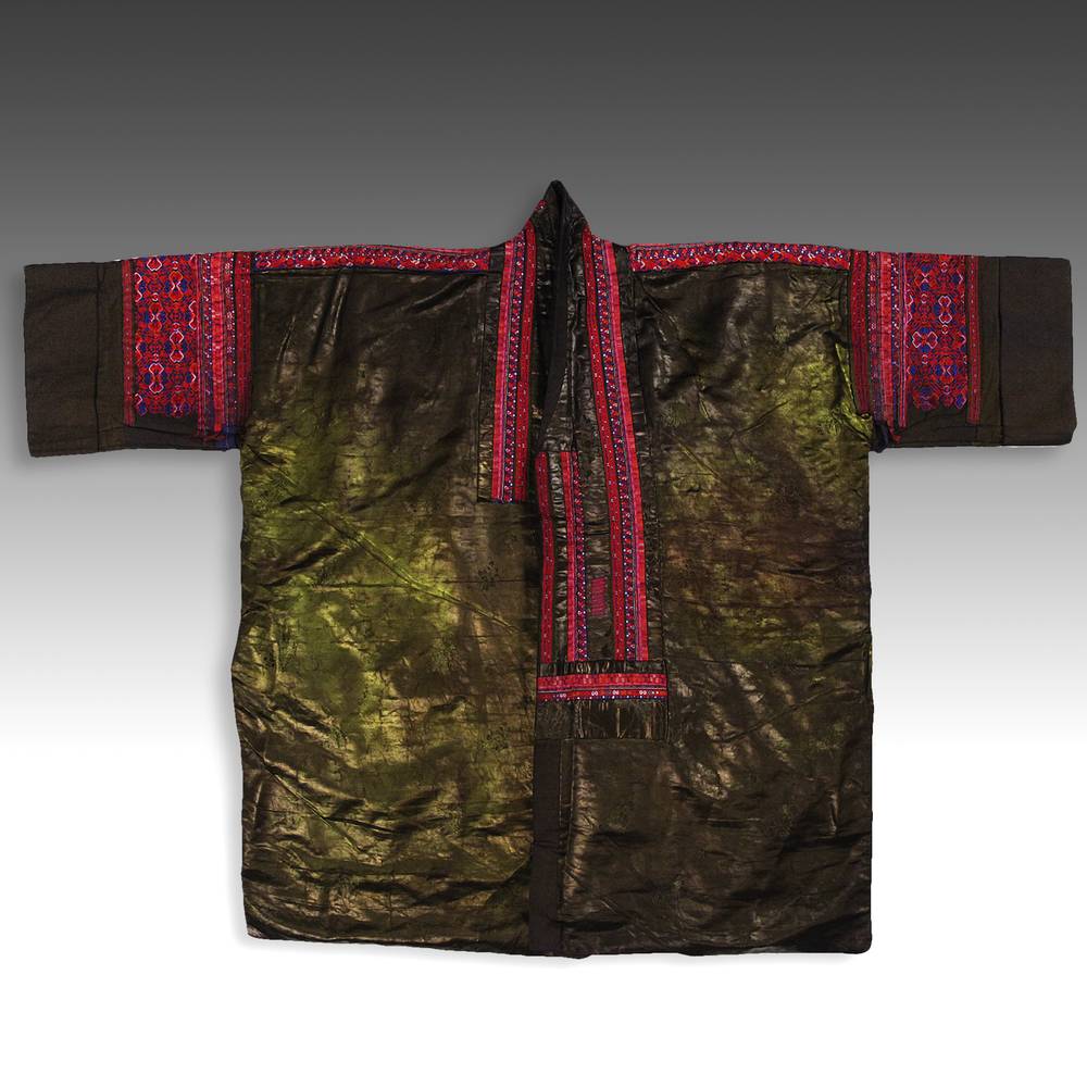 Woven silk and cotton, with embroidery