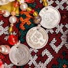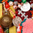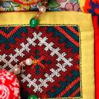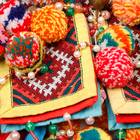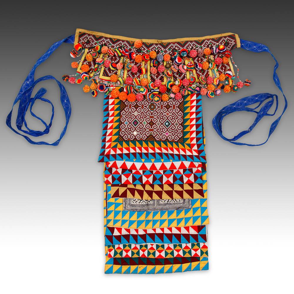 Cotton applique, cross-stitch & batik with tassels, coins and ornaments in various layers