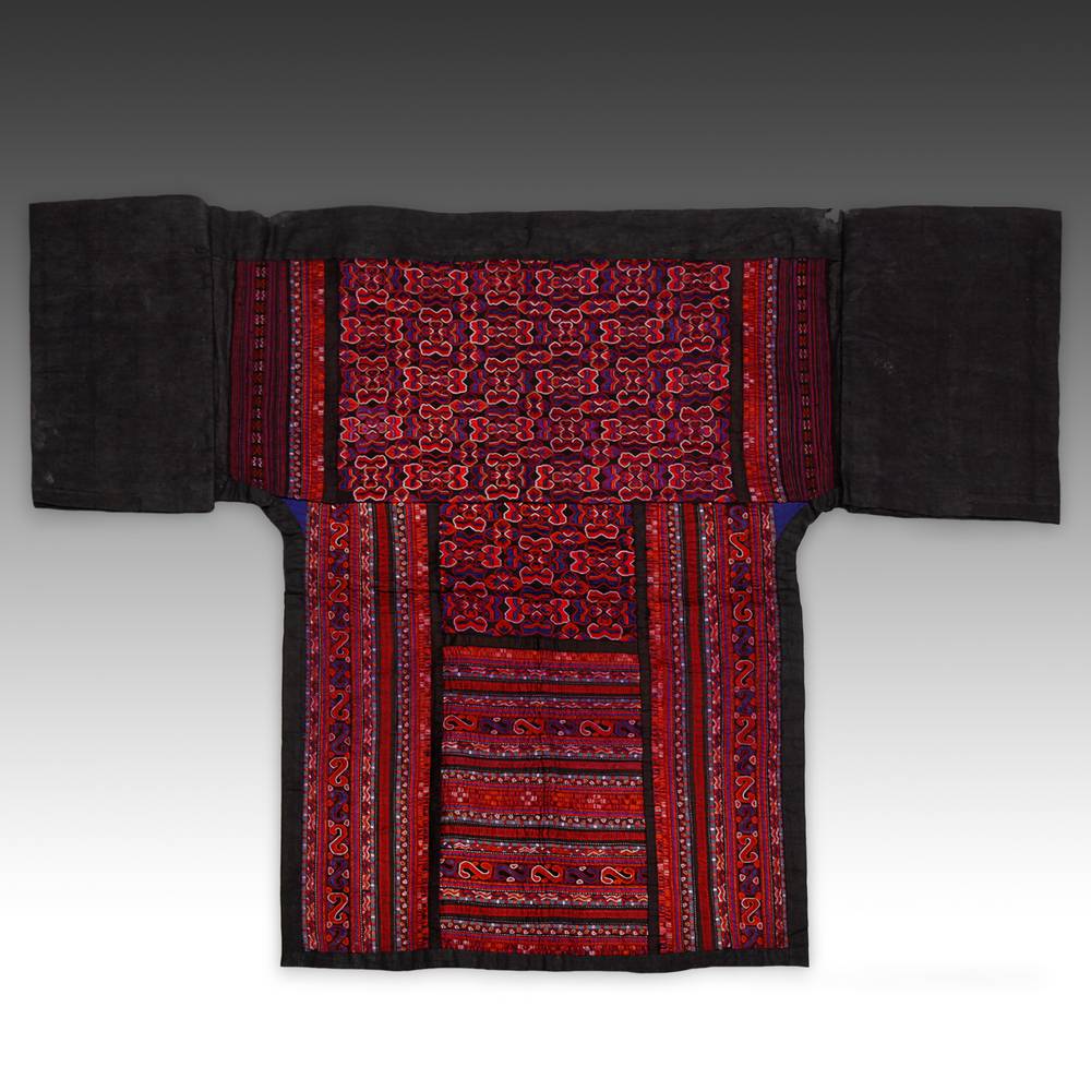 Cotton with silk chain stitch, plain stitch, counted stitch , "pinched" satin and applique