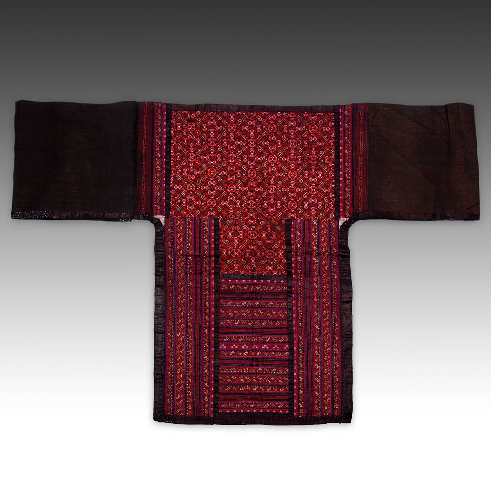 Cotton with silk chain stitch, plain stitch, counted stitch , "pinched" satin and applique