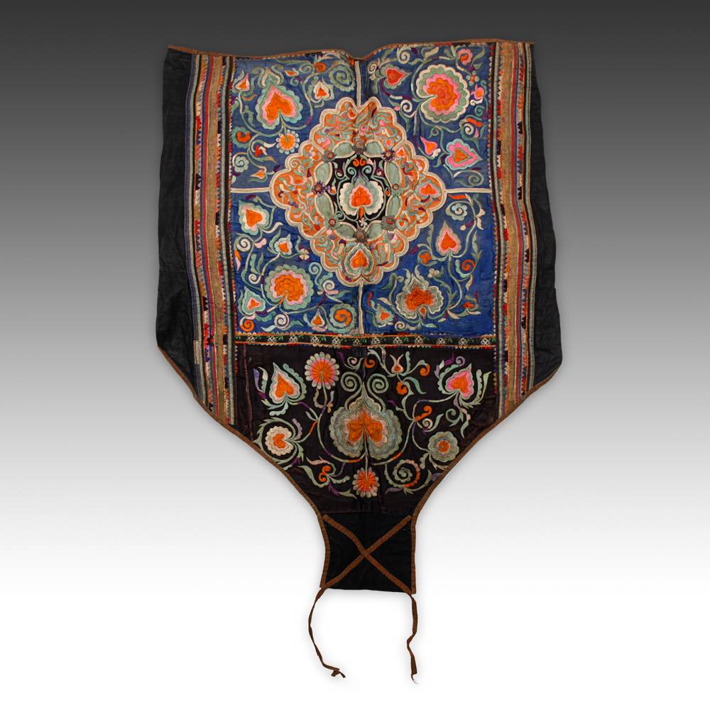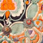Cotton with silk "cut and fold" applique, satin stitch and metal trim