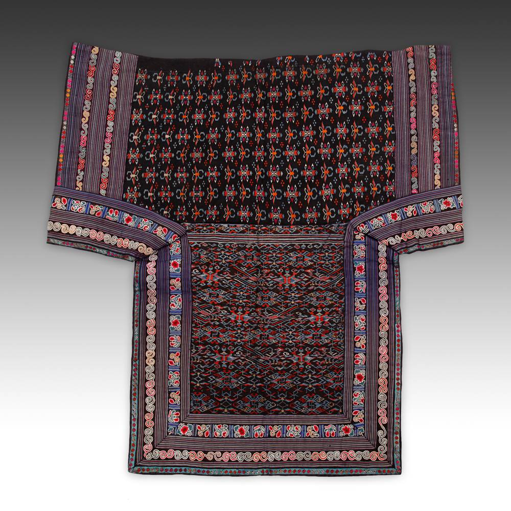 Cotton with silk Florentine embriodery, da-zi (seed) or "forbidden" stitch and applique