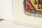 Cross-stitch embroidery on cotton, sequin trim