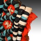 Agbogho Mmuo, or Maiden Spirit masquerades are performed annually during the dry season in the Nri-Awka area of northern Igboland, Nigeria. Brightly colored costumes are made and danced by mature men in their late 20's through 50's. They dance as adolescent girls, miming and exaggerating their beauty and comportment. The designs on the full body costumes are made from different colored appliqued cloth representing the patterns of body paintings called uli.