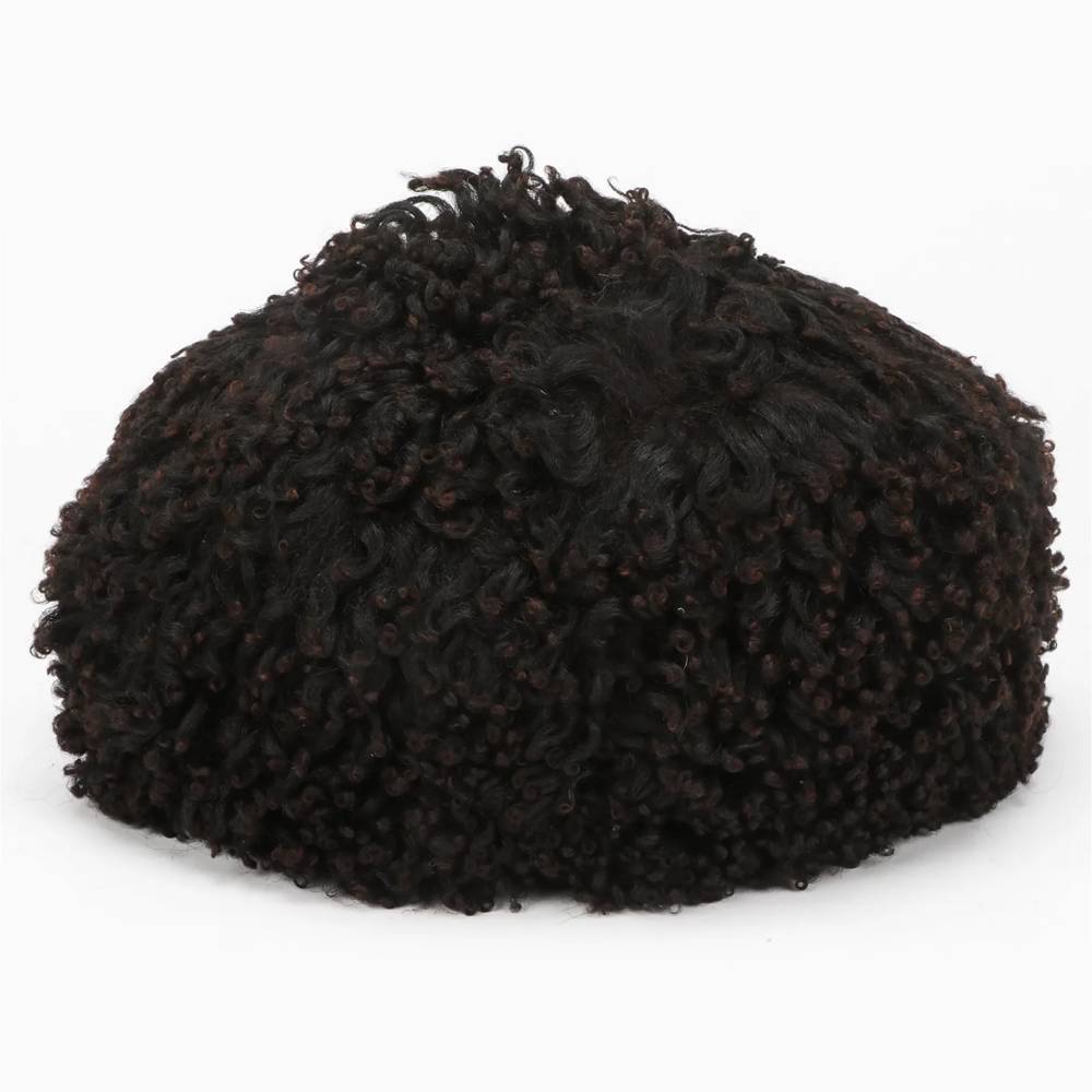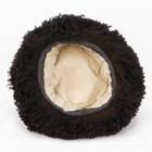 This sheep pelt hat, featuring 3-inch black wool, originates from Turkmenistan. Similar hats are crafted by Kwarezmians in Urgench and Khiva. These hats come in various colors, with some being pure white, while others have a lovely apricot hue or other natural sheep's wool shades. They are typically lined with undyed cotton cloth.