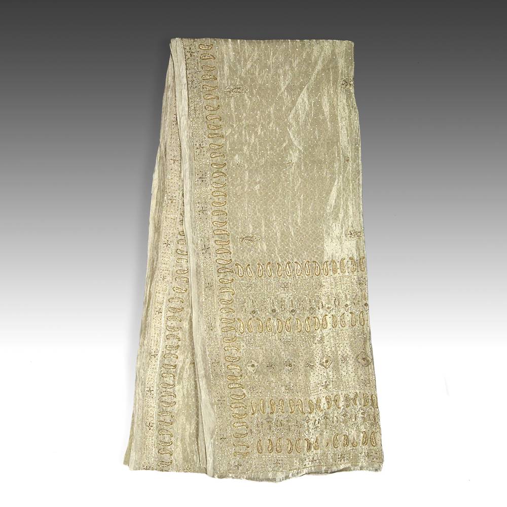 Silk, metallic thread, beads