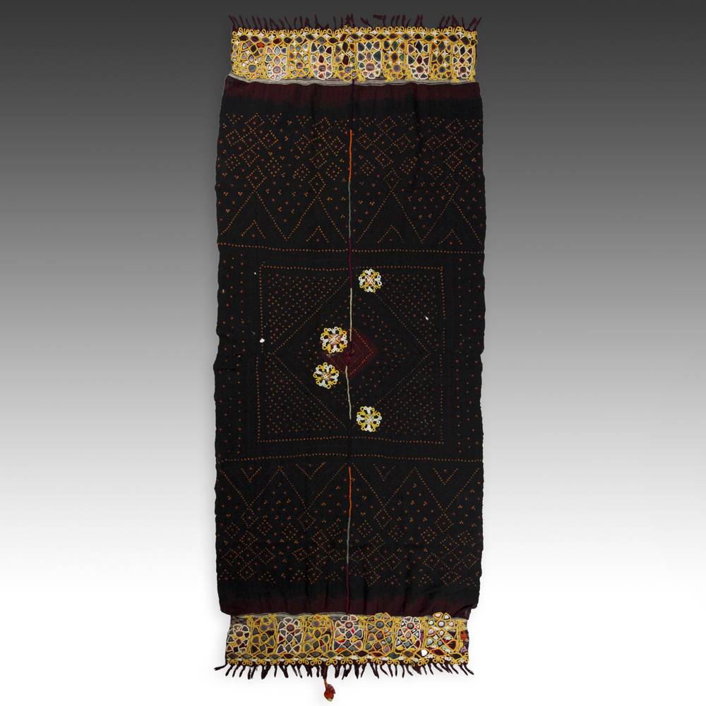 Tie dyed wool with embroidery, mirrors, and talismanic packets