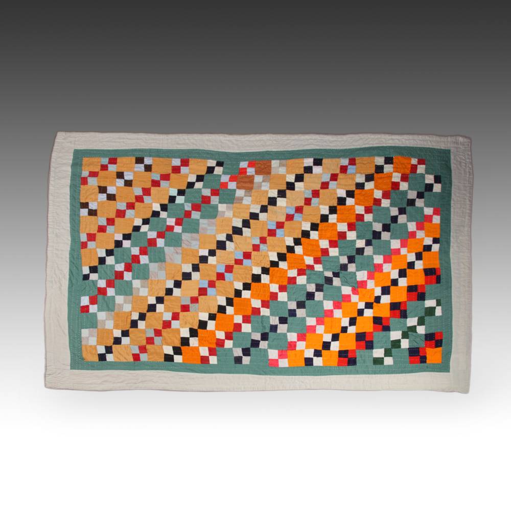 pieced and hand-quilted cotton and other fabrics