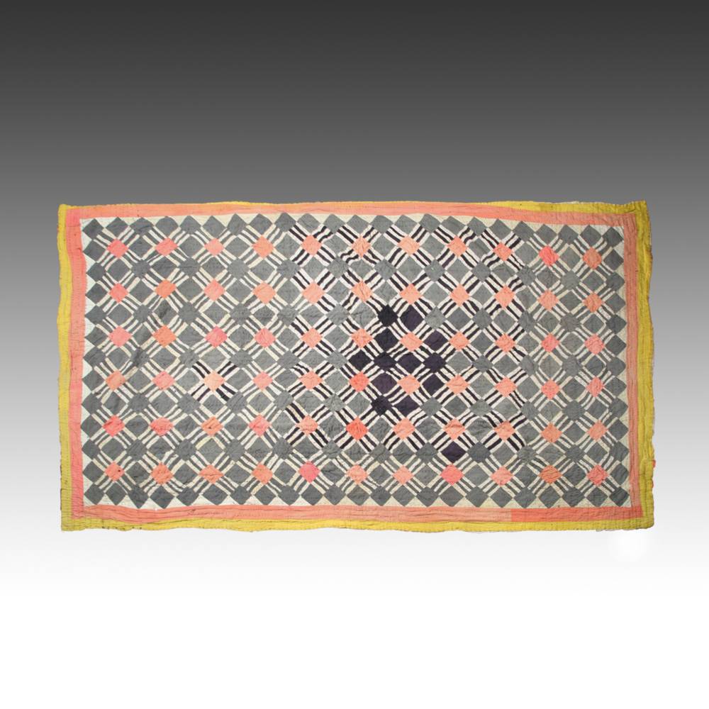 pieced and hand-quilted cotton and other fabrics