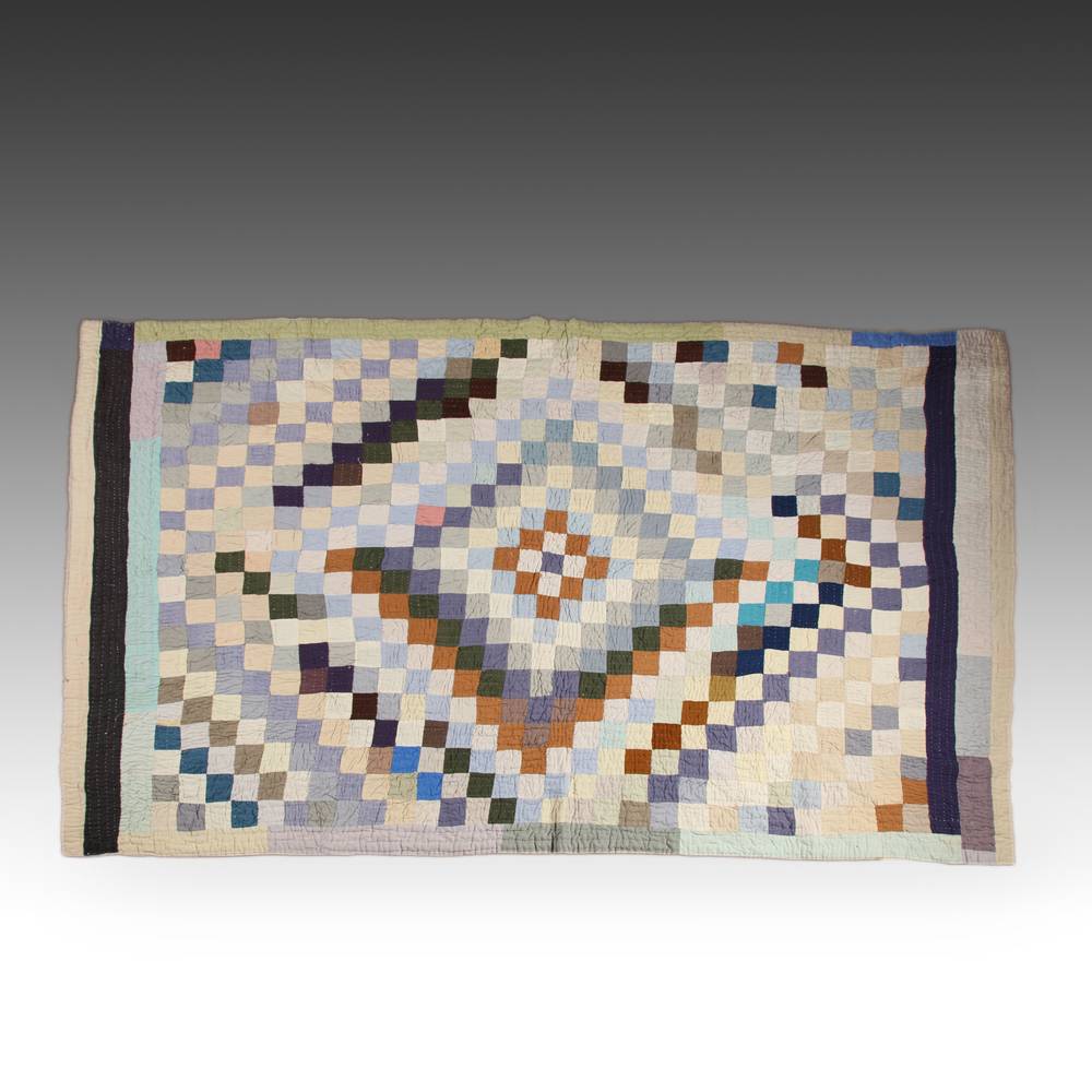pieced and hand-quilted cotton and other fabrics