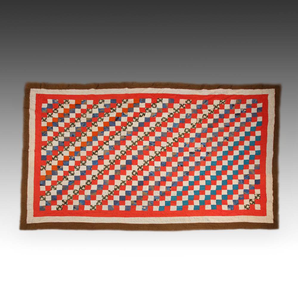 pieced and hand-quilted cotton and other fabrics