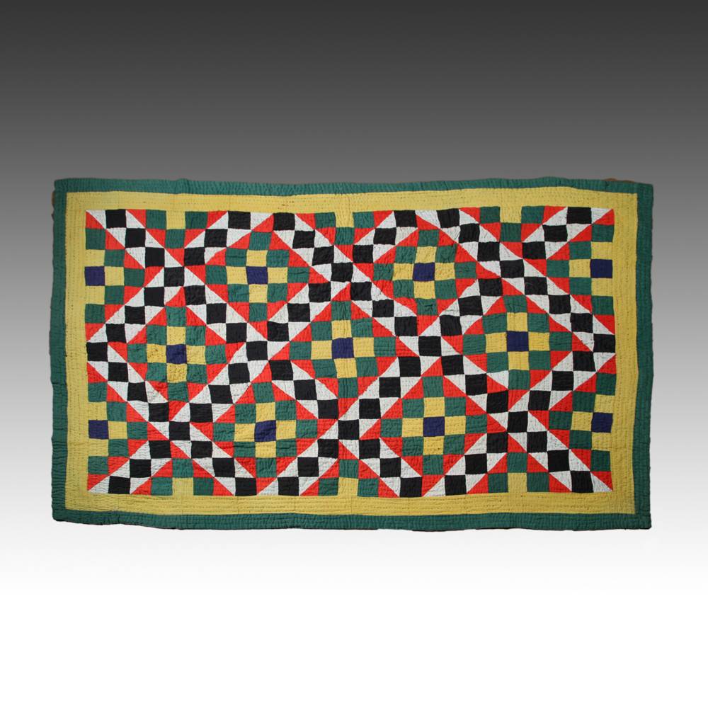 pieced and hand-quilted cotton and other fabrics