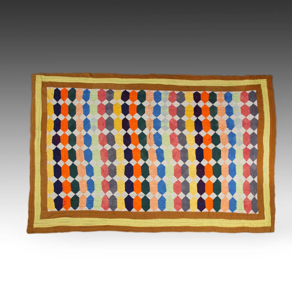 pieced and hand-quilted cotton and other fabrics