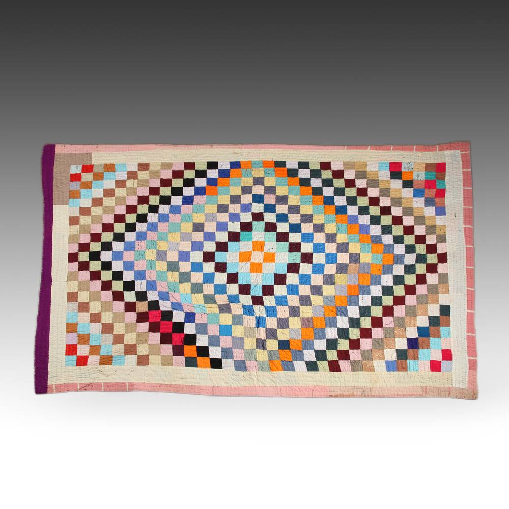 pieced and hand-quilted cotton and other fabrics