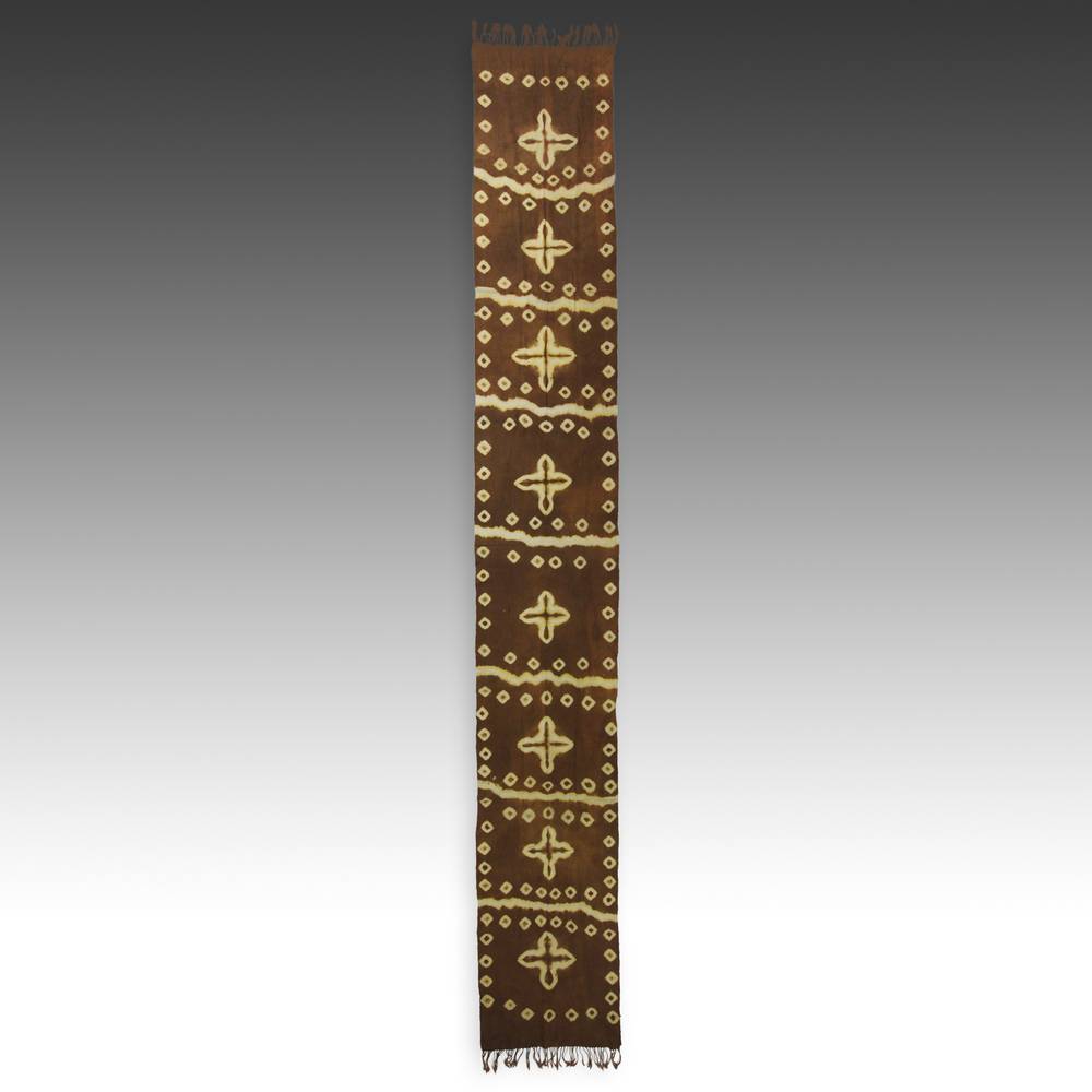 The 'sarita,' a distinctive type of sacred textile (maa') amongst the Toraja people of Sulawesi, were used in various ways: they were flown from tall bamboo poles before the house of a deceased person, or wrapped around the head of the wooden effigy representing the dead. The sarita is also technically significant because the designs were obtained by a resist process that must have resembled batik.