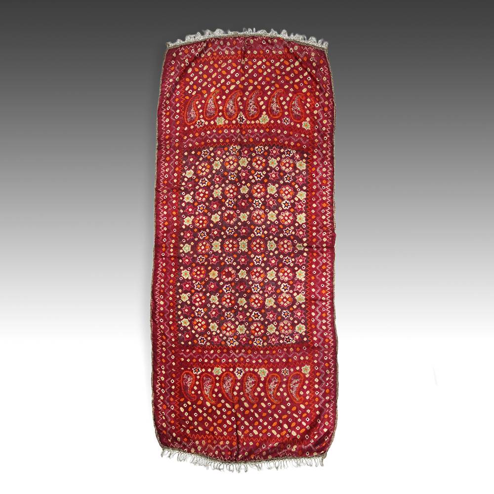 Silk with metal thread border & fringe 36'' W x 84'' L