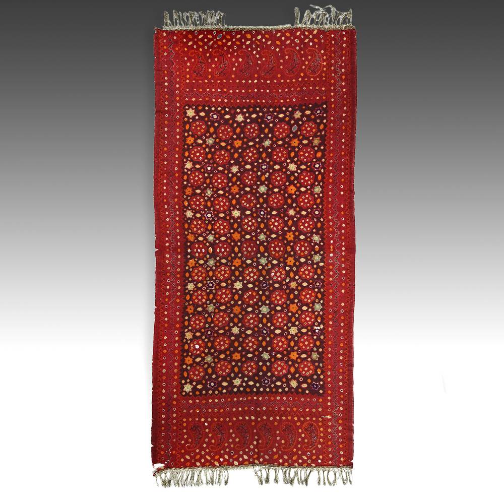 Silk with metal thread border & fringe 31'' W x 68'' L