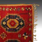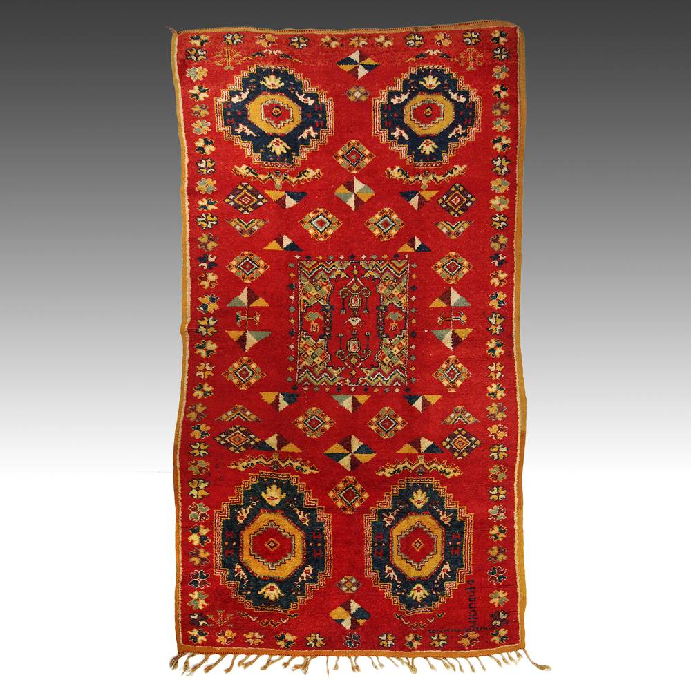 The Beni Ourain people, living in the Middle Atlas ranges of Morocco, weave one of the most unique carpets of the region. Due to their geographic isolation deep in the mountains, they were historically untouched by the influence of Arabic designs. The motifs found on Beni Ourain rugs are abstracted representations of the world and landscapes surrounding the people. Adhering to no rule or formal pattern, the designs on these large, plush rugs have a freshness and spontaneity found no place else.