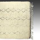 The Beni Ourain people, living in the Middle Atlas ranges of Morocco, weave one of the most unique carpets of the region. Due to their geographic isolation deep in the mountains, they were historically untouched by the influence of Arabic designs. The motifs found on Beni Ourain rugs are abstracted representations of the world and landscapes surrounding the people. Adhering to no rule or formal pattern, the designs on these large, plush rugs have a freshness and spontaneity found no place else.