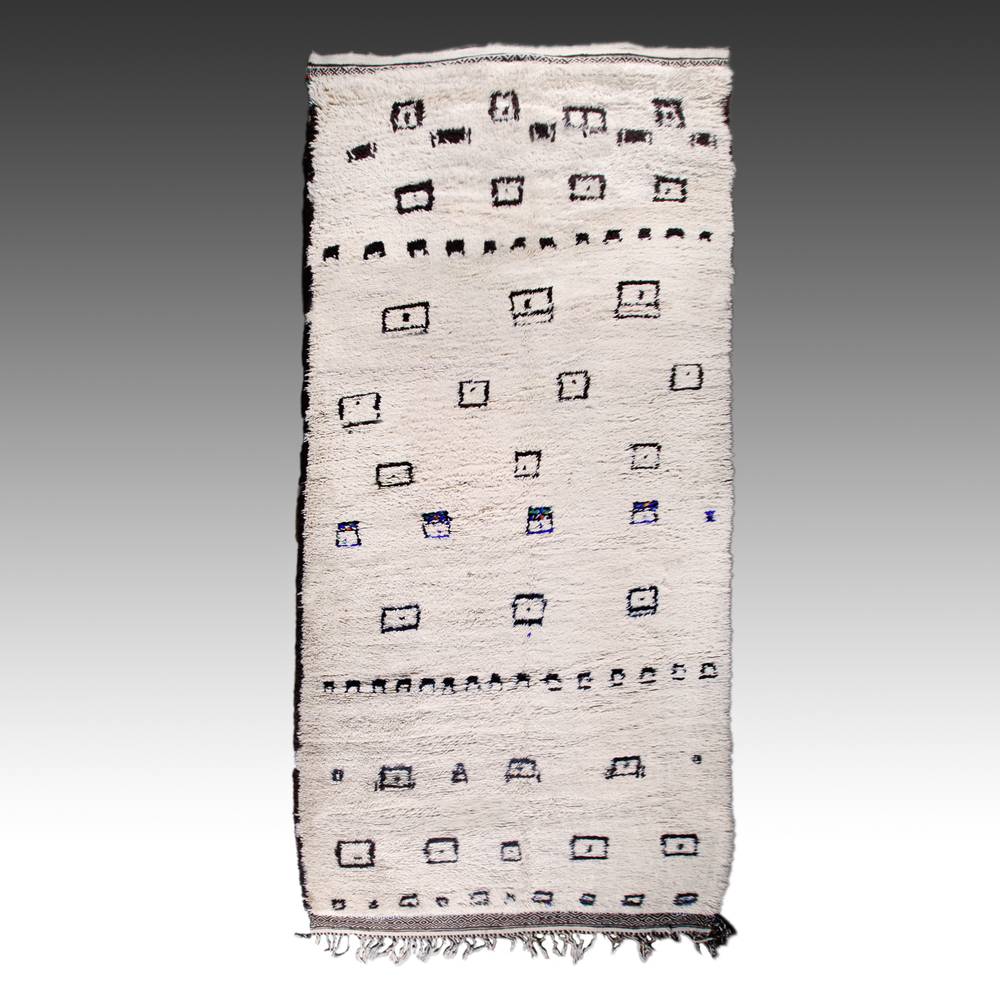 The Beni Ourain people, living in the Middle Atlas ranges of Morocco, weave one of the most unique carpets of the region. Due to their geographic isolation deep in the mountains, they were historically untouched by the influence of Arabic designs. The motifs found on Beni Ourain rugs are abstracted representations of the world and landscapes surrounding the people. Adhering to no rule or formal pattern, the designs on these large, plush rugs have a freshness and spontaneity found no place else.