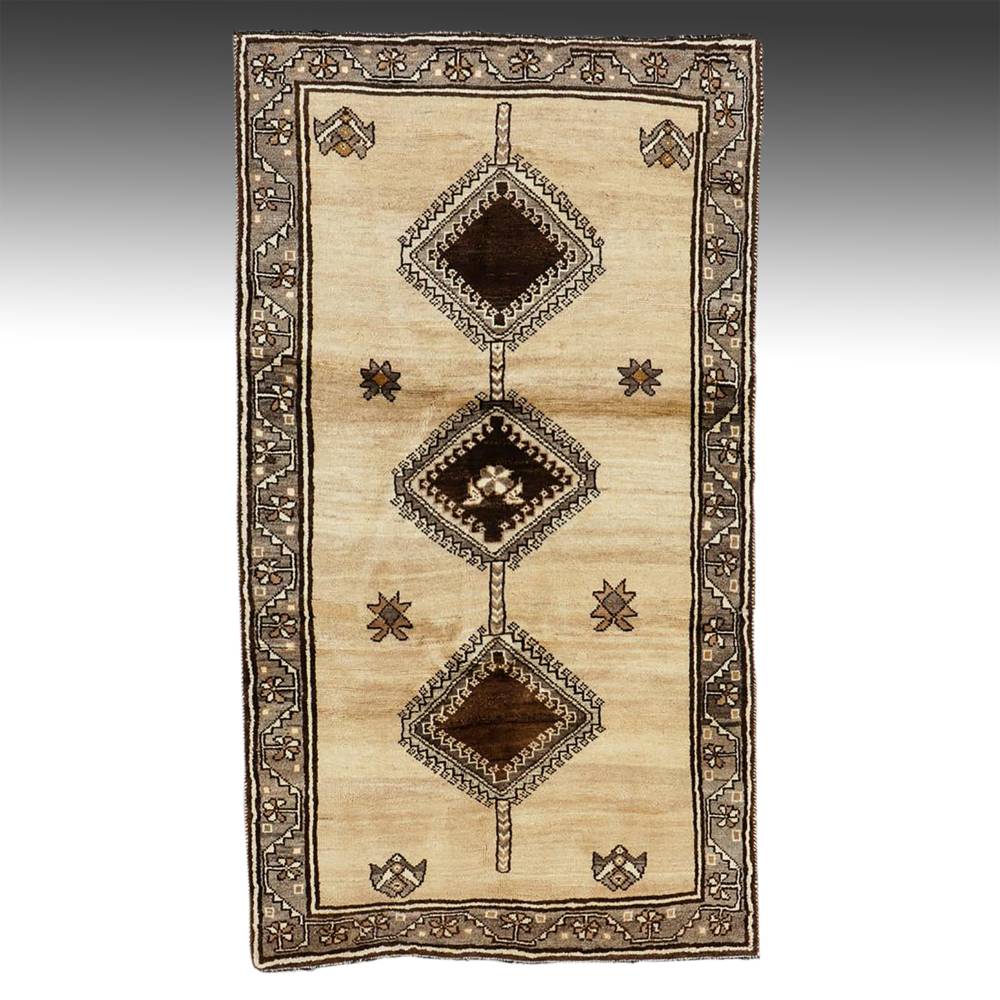 Gabbeh Rug With 3 Diamond Motif and Alternating Floral Border