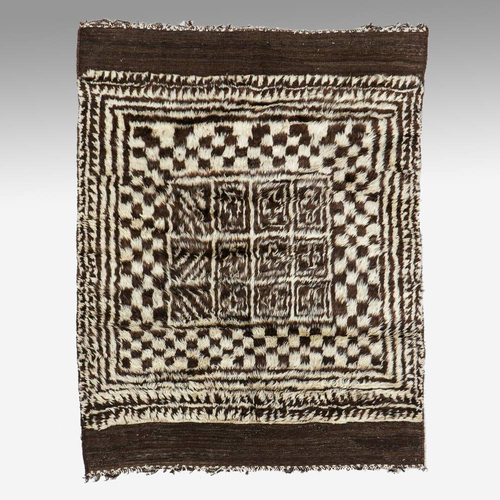 Gabbeh with Checkerboard Center and Brown Banding