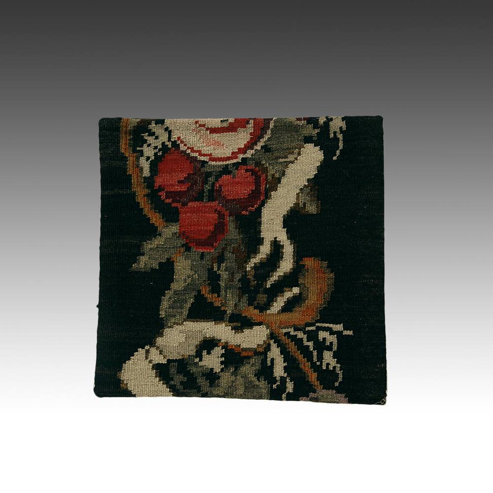 Kilim Rug Pillow Case with Floral Motif