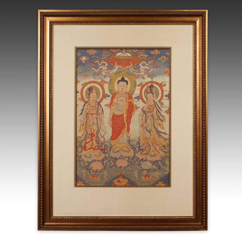 Thangka Depicting Buddha Shakyamuni with Taras, Framed