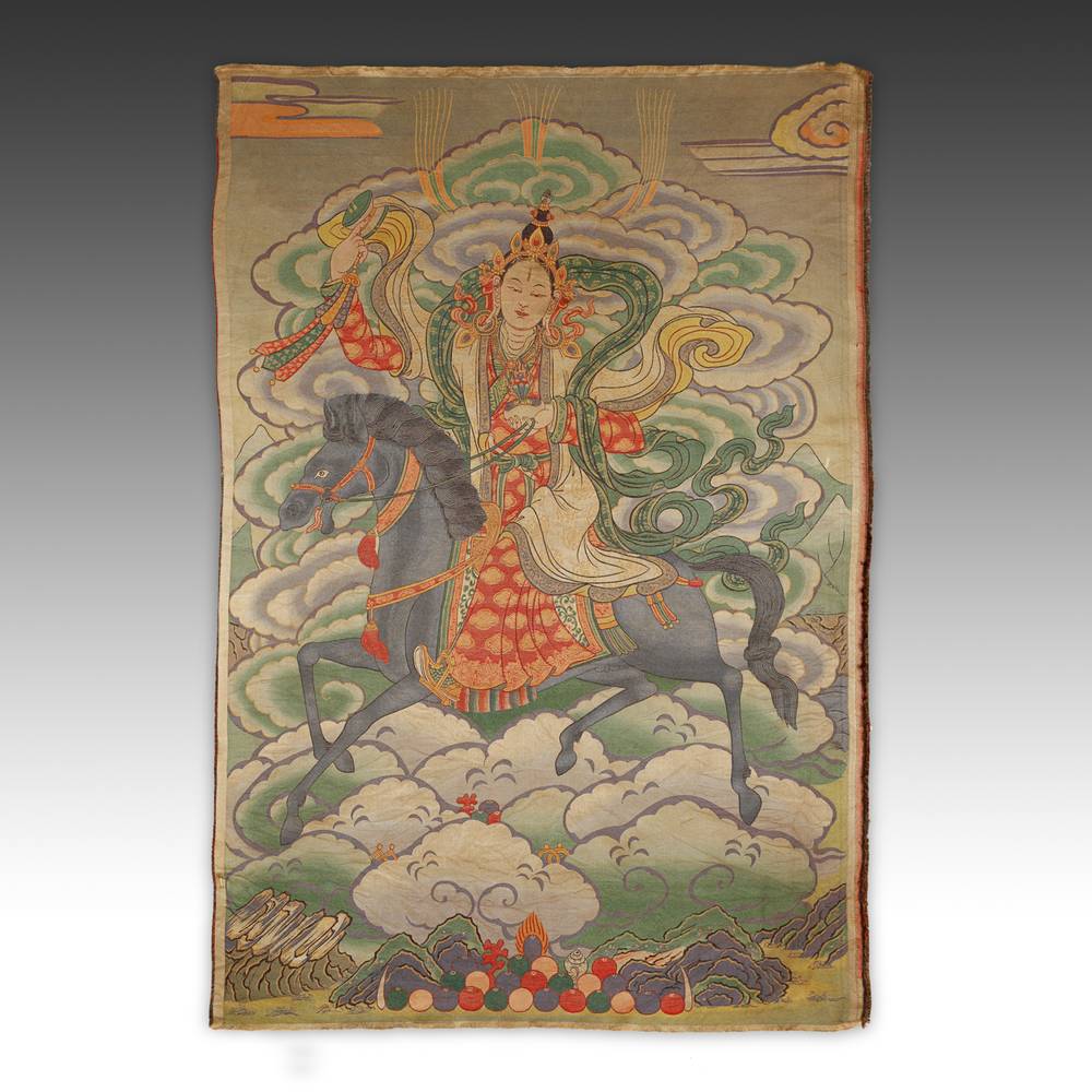 Thangka Depicting Lhamo (Goddess), or White Tara on a Horse