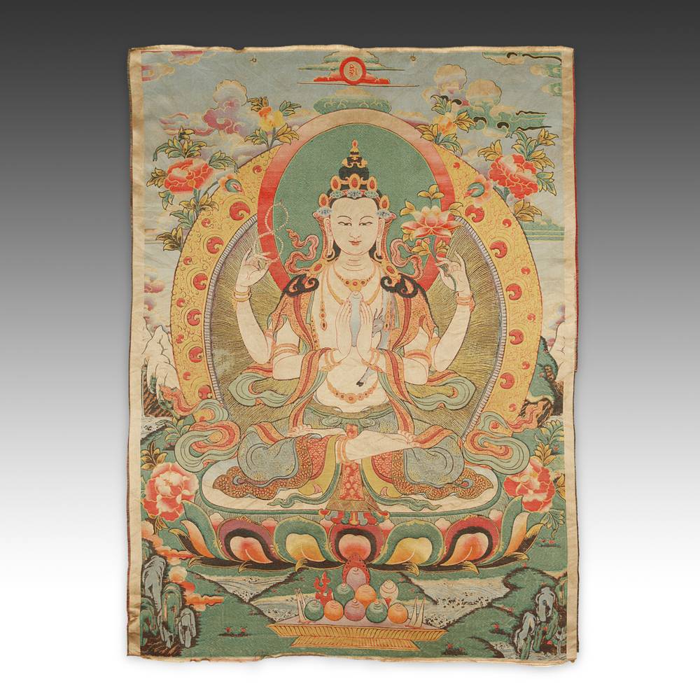 This exceptional altar cover depicts the goddess Tara, different manifestations of which are represented by different colors — white, green, yellow, blue, and red. Many myths surround... <a href="/stories-descriptions/five-taras-or-goddess-tara">Read more</a>